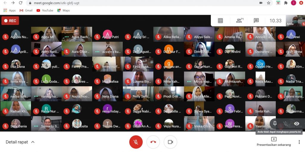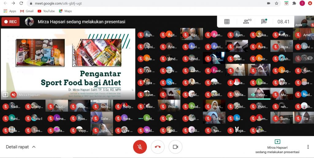 | 2 | Gizi Olahraga | Karbohidrat Loading dan Pengembangan Produk Makanan untuk Atlet | 19 Oktober 2020 | Dr. Mirza Hapsari Sakti Titis Penggalih, S.Gz., MPH, RD | Universitas Gadjah Mada | 39 Mahasiswa dan 5 orang dosen | view |